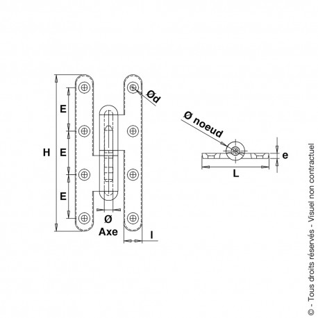 Charnière à souder CHARLAM 5 nœuds, proposée en diamètre D12 mm, en acier finition zingué blanc pour porte battante.