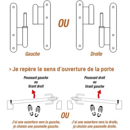 Paumelle de grille à souder profilée nœud arasé lame déportée, avec une bague laiton, en acier brut ou zingué blanc, proposés dans différentes longueurs, droit ou gauche.