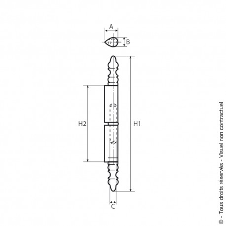 Paumelle de grille à souder roulée lame double au centre en acier pour porte battante