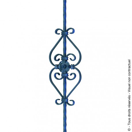 Barreau fantaisie N°15 acier carré pour portail acier, martelé, D12, 950x160, en finition brut