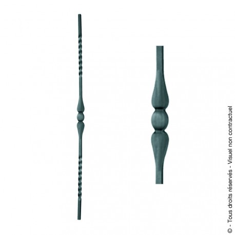 Barreau fantaisie N°17 acier carré pour portail acier, D14, 950x40, en finition brut Motif central plat