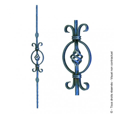 Barreau fantaisie N°36 acier carré pour portail acier, martelé, D12, 950x135, en finition brut