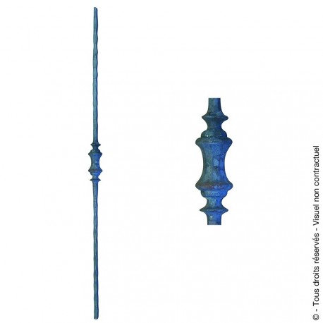 Barreau fantaisie N°44 acier carré pour portail acier, martélé, D14, H1000, en finiton brut