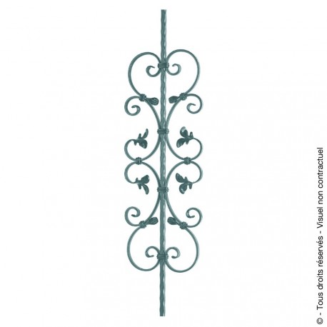 Barreau fantaisie N°68 acier carré pour portail acier, martelé, D14, 950X260, en finition brut