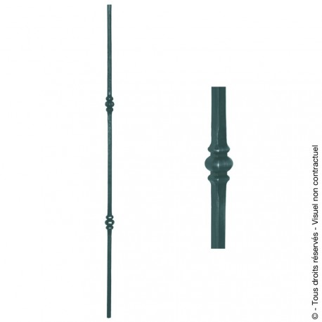 Barreau fantaisie N°131 acier carré pour portail acier, D14, H1000 double, en finition brut