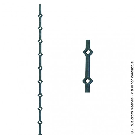 Traverse N°11 acier carré pour portail acier, diamètre D16 mm,16x15 mm, longueur 1834 mm, acier en finition brut. Intervalle de vide 110 pour barreau en carré de 16,13 trous